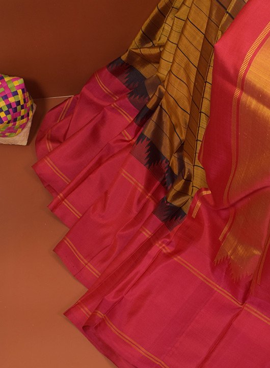 The Korvai technique of weaving sarees has always been synonymous with Kancheepuram. Though a few other states also produce these kind of sarees it is the South which lays claim to producing the finest of Korvai silks woven mostly in the Temple City of Kancheepuram. The tradition was existent in Thanjavur many years ago, but lost in the layers of time and now revived with vigour.